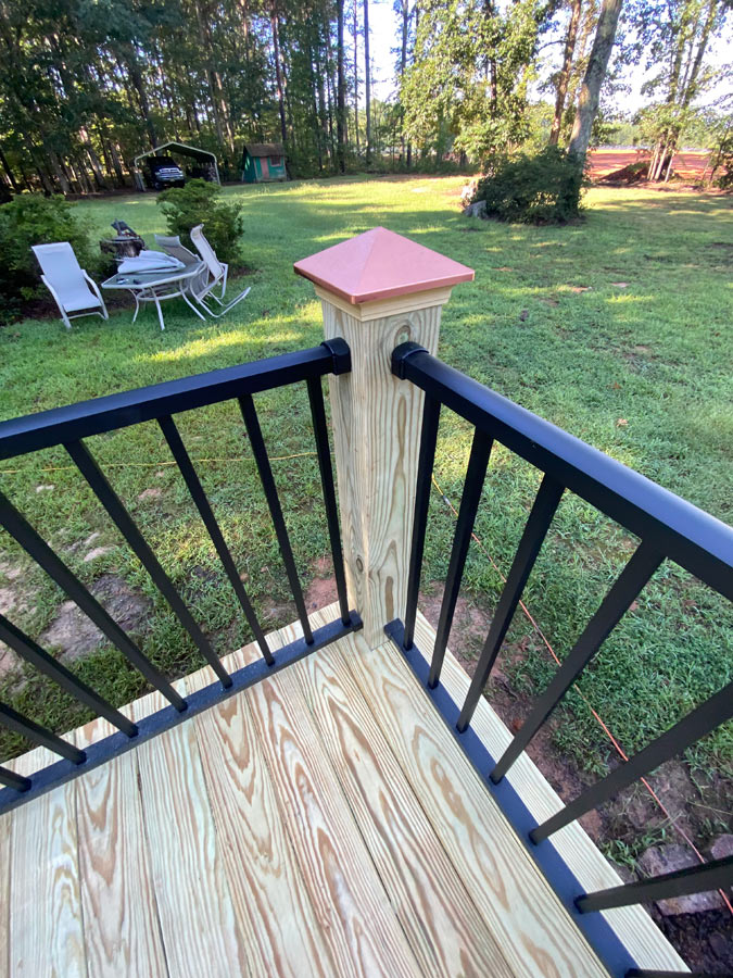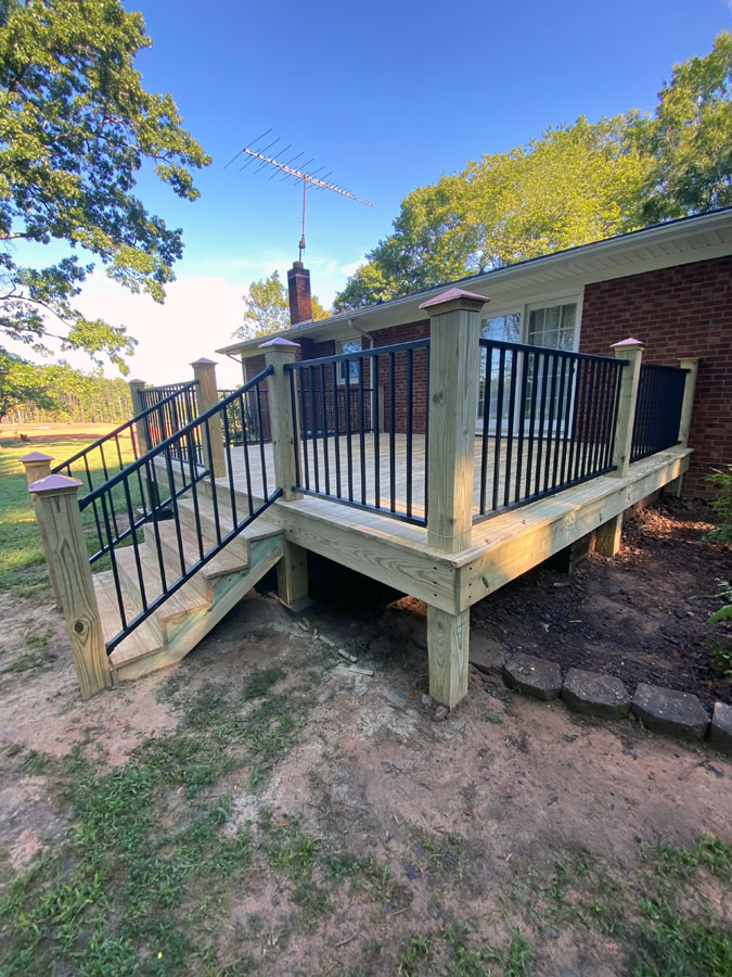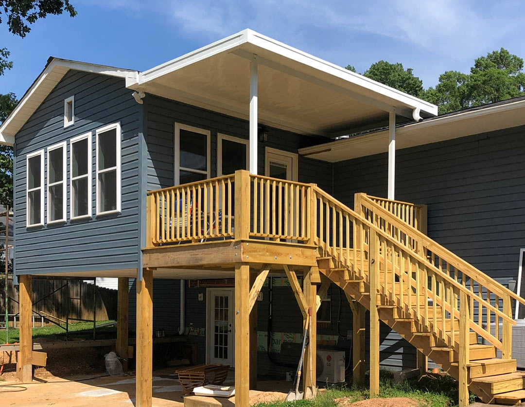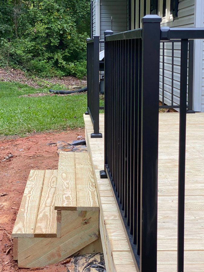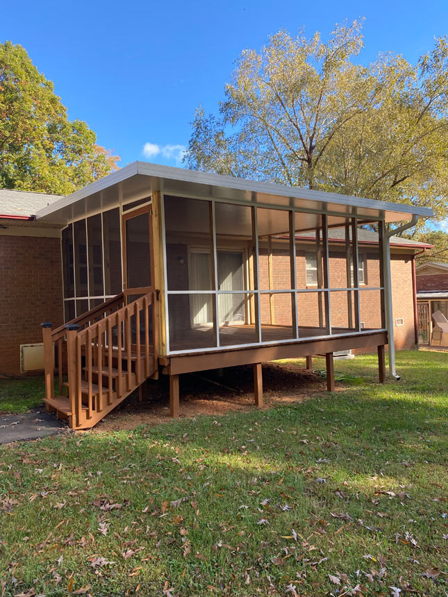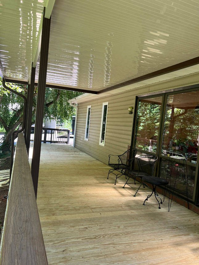 We are highly skilled in building decks, porches and patios in the Rowan County, NC area, and we use the latest and highest quality deck products. Some of the materials we install include PVC and composite decking, and metal and aluminum railings.